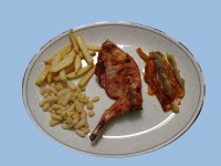 150, de harina de maiz, 50,gr de harina de trigo, tomillo, y perejil,